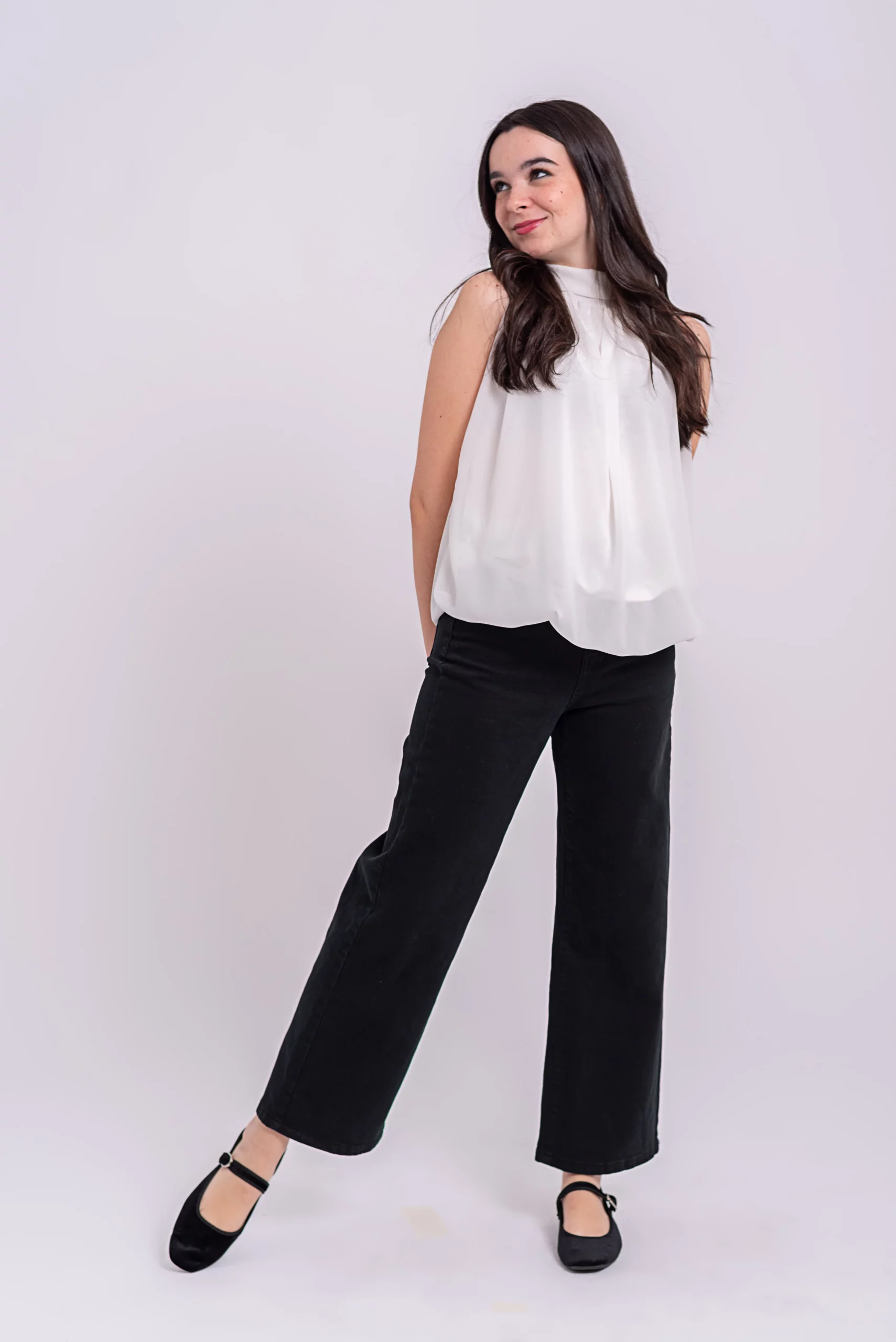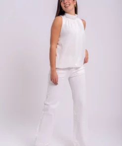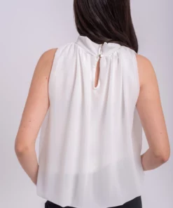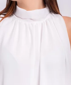 Blusa sin mangas. Cuello halter. Gasa ligera con forro. Corte abullonado. Largo a cadera. Elastico. Super adaptable y favorecedora.