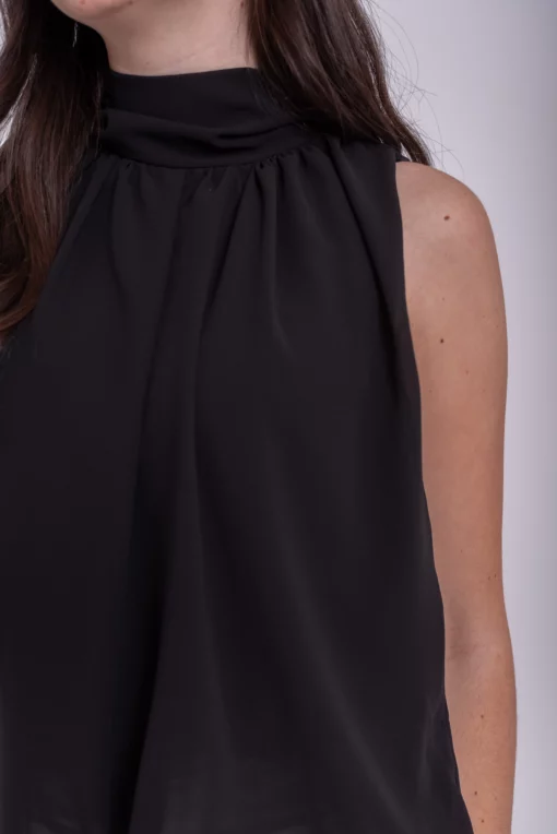 Blusa sin mangas. Cuello halter. Gasa ligera con forro. Corte abullonado. Largo a cadera. Elastico. Super adaptable y favorecedora.