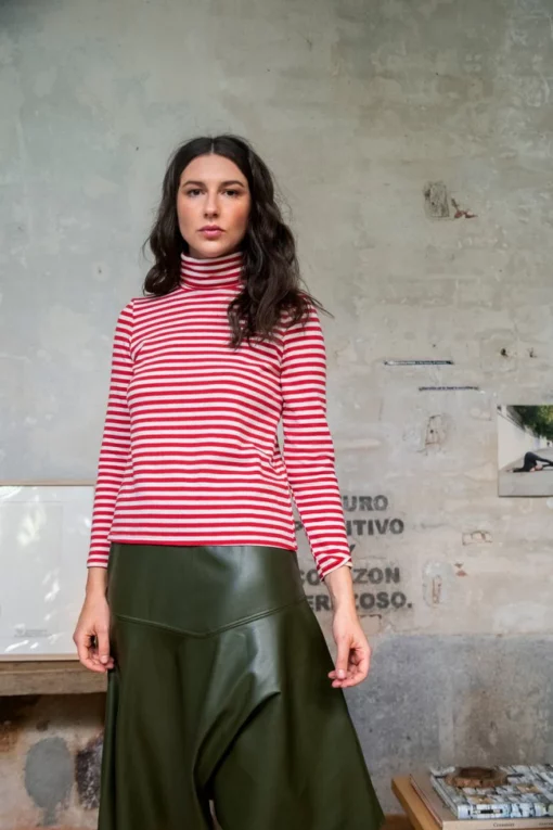 Top de cuello vuelto, realizado en un tejido de algodón con mezcla, suave y ligero que hace que no se pegue al cuerpo.