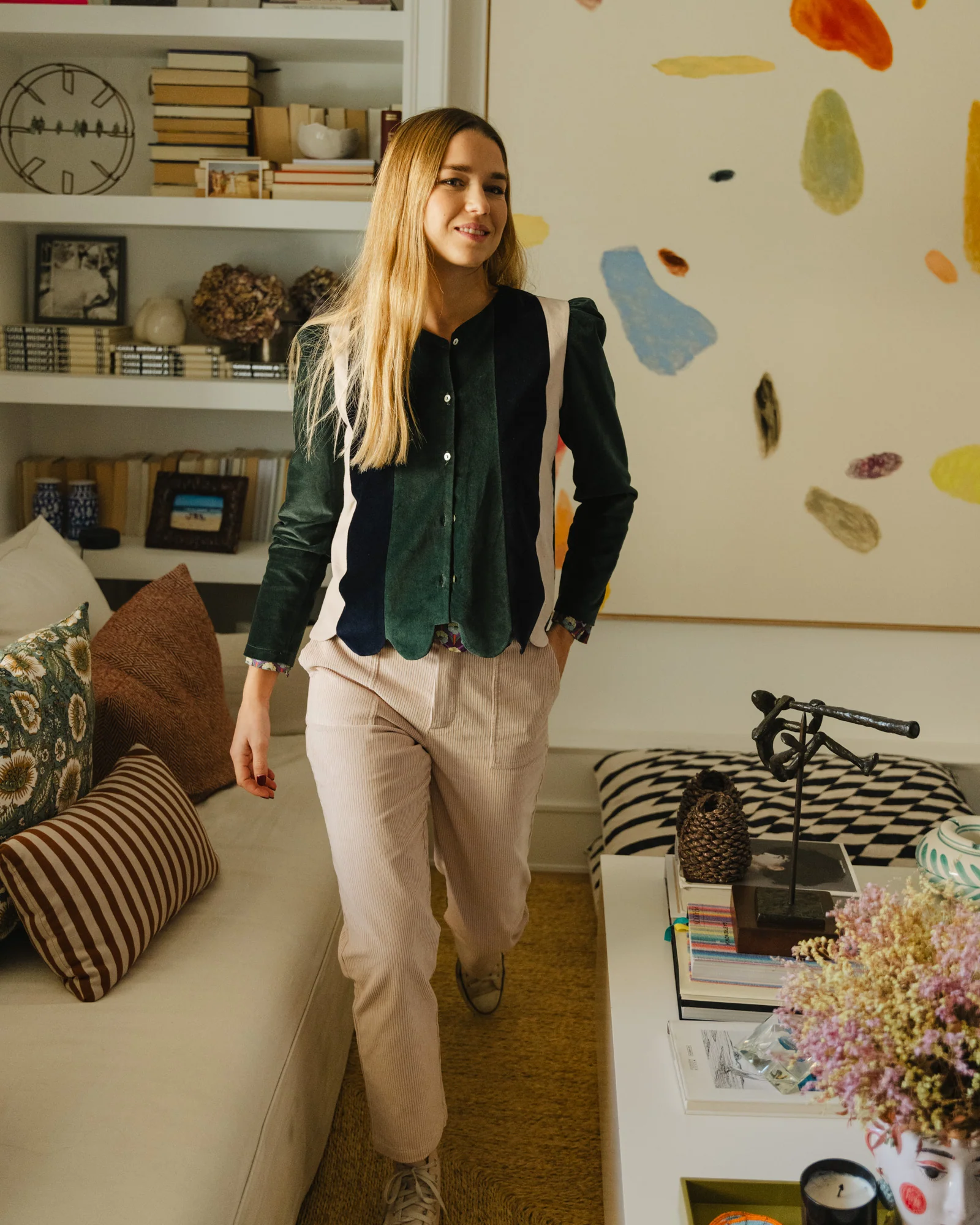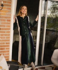 No puede ser más especial, por su terciopelo en tres colores: botella, marino y rosita, y por las ondas del bajo.