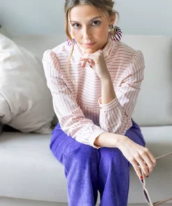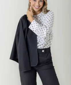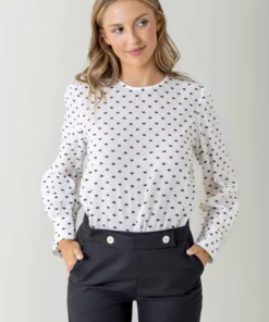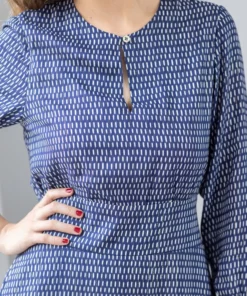 – Cuello redondo con abertura en el delantero abrochado con botón.