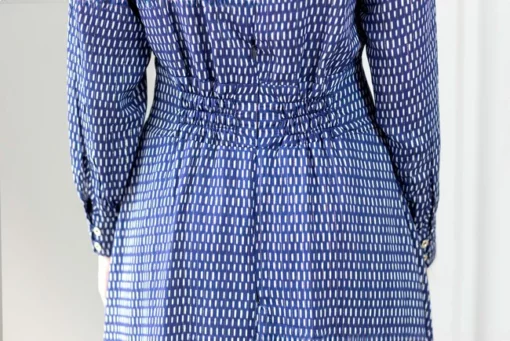 – Cuello redondo con abertura en el delantero abrochado con botón.
