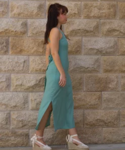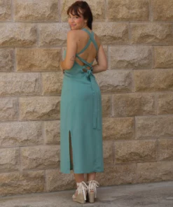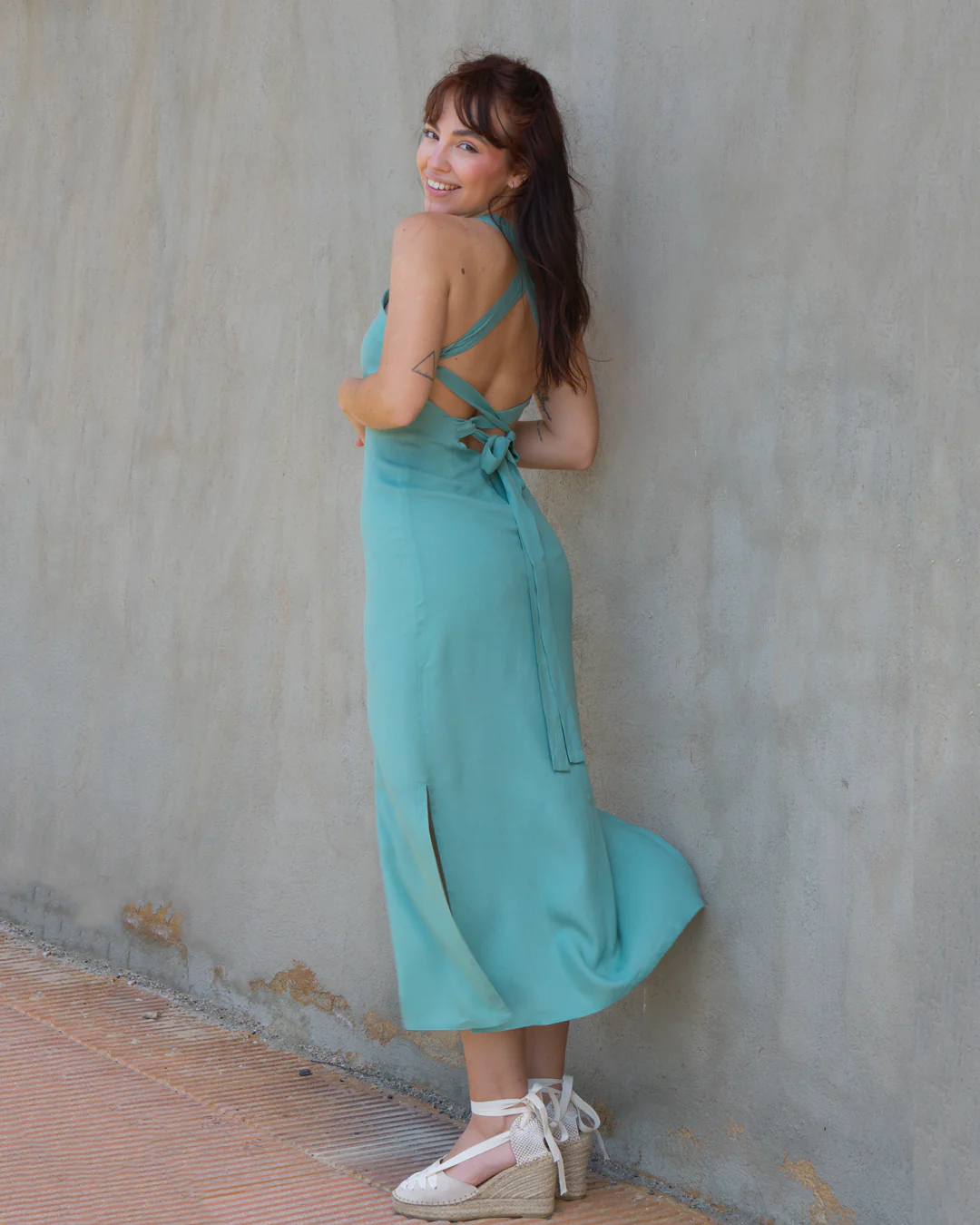 Vestido midi con lazada y cremallera en el trasero.