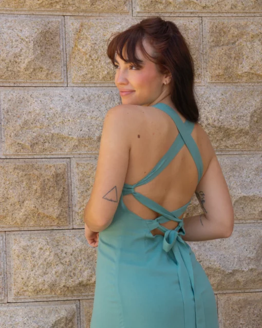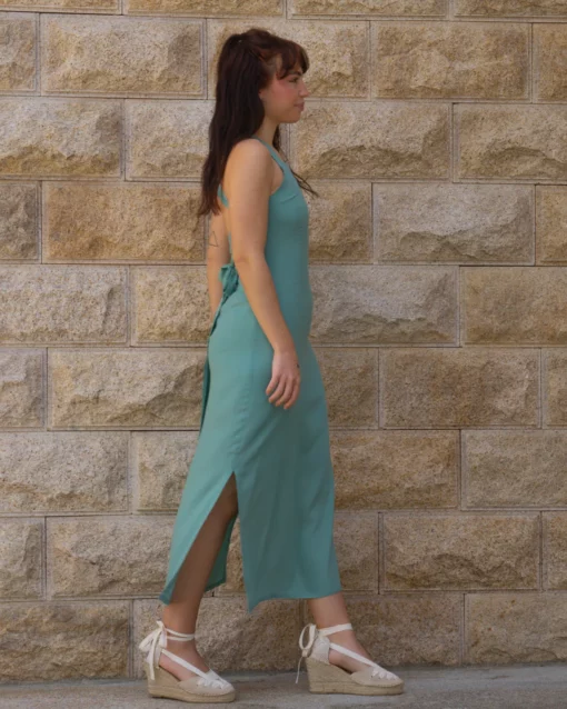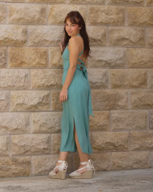 Vestido midi con lazada y cremallera en el trasero.