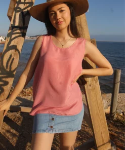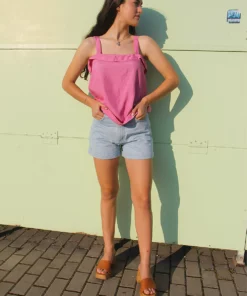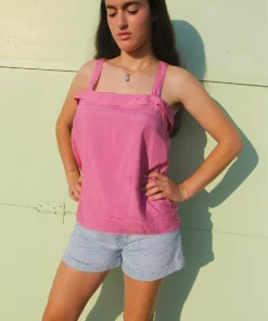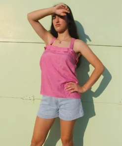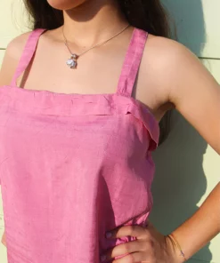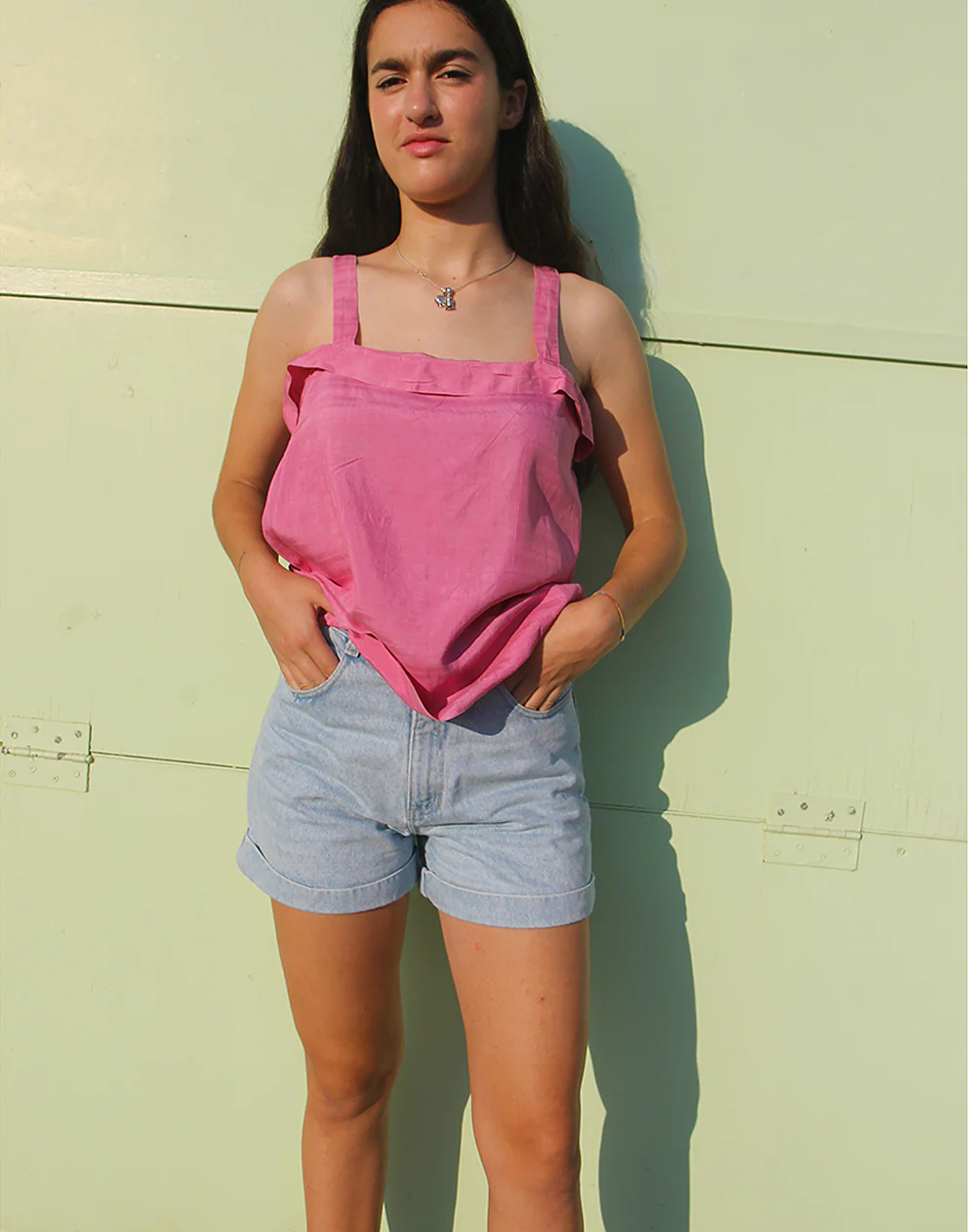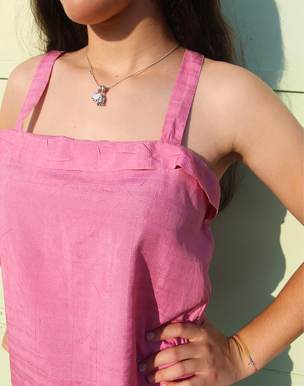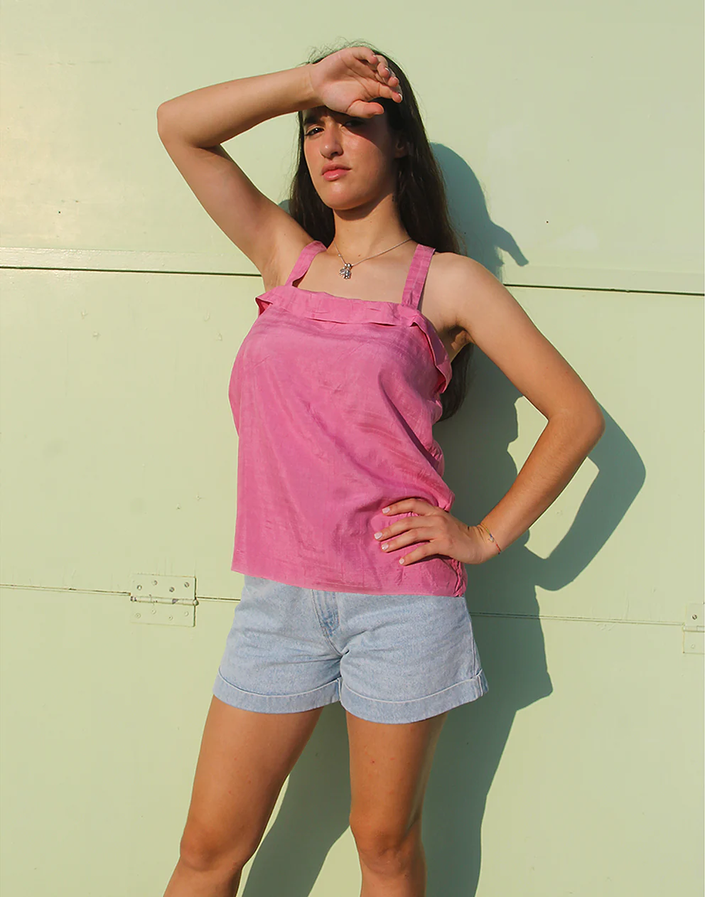 Vintage Handmade Pink Silk Camisole Top with Front Ruffle Detail