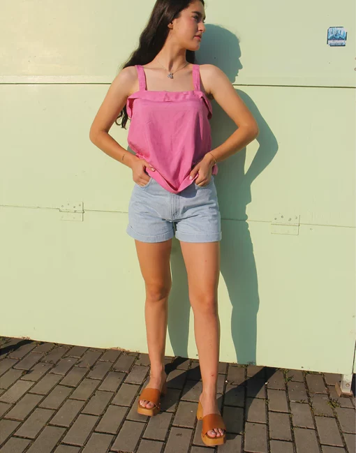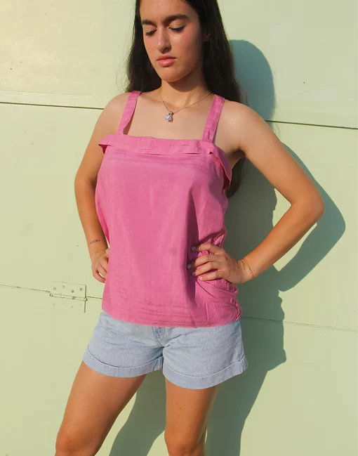 Vintage Handmade Pink Silk Camisole Top with Front Ruffle Detail