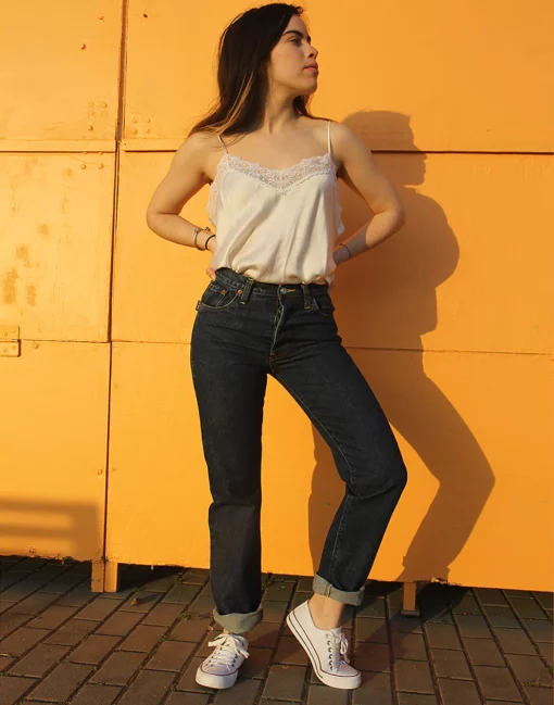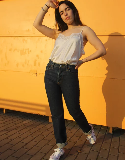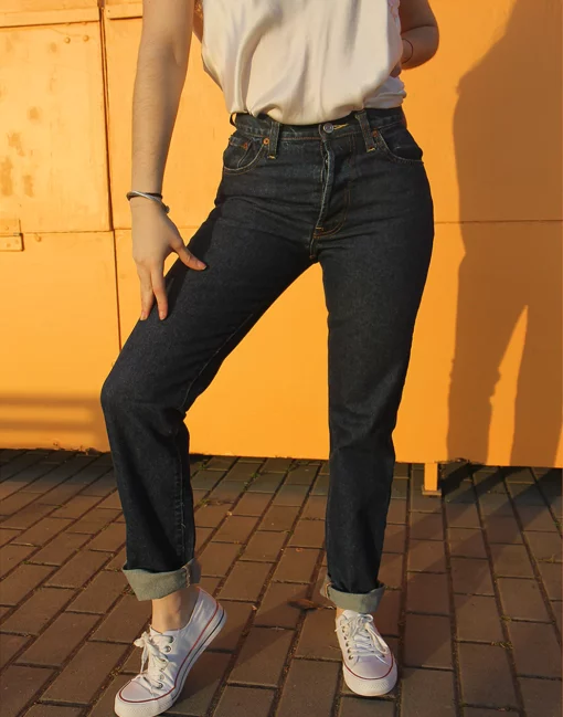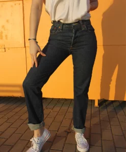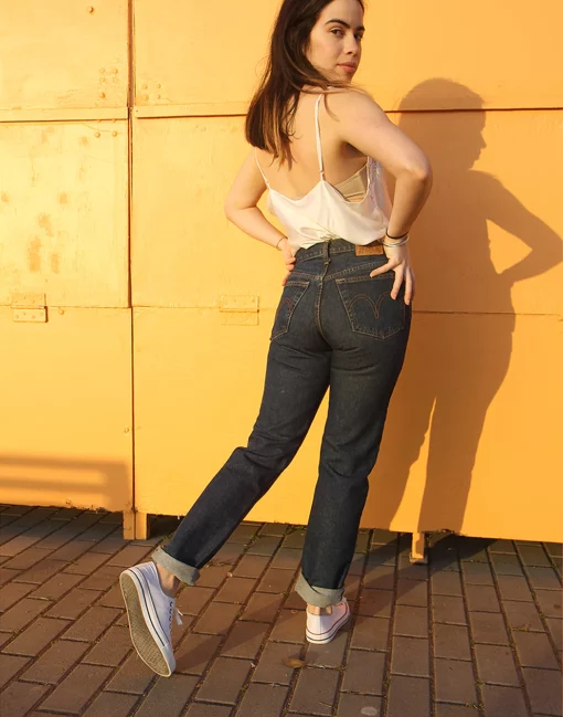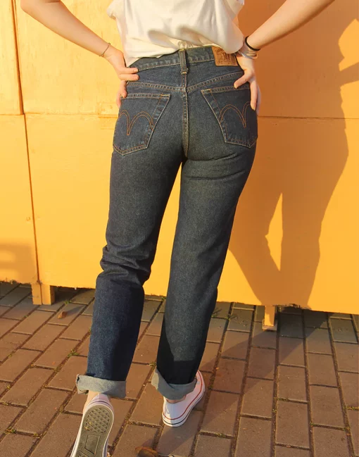 Vintage High Waisted Mom Jeans in a Dark Blue Wash Denim