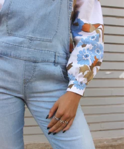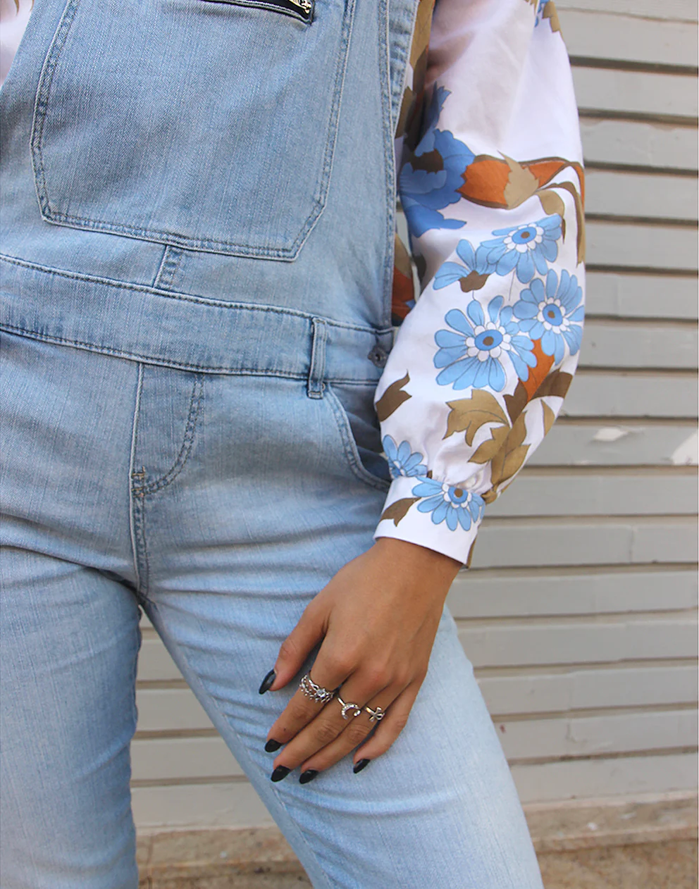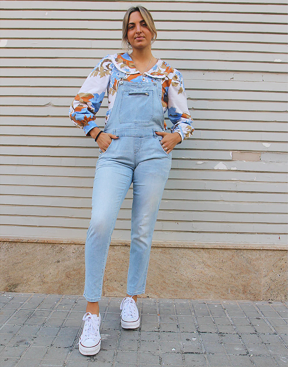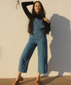 Measurements – 8″(21cm) top of bib – 11.5″(30cm) bottom of bib – 28″(71cm) waist – 32″(81cm) hips – 29″(74cm) inner leg – 10″(26cm) rise.