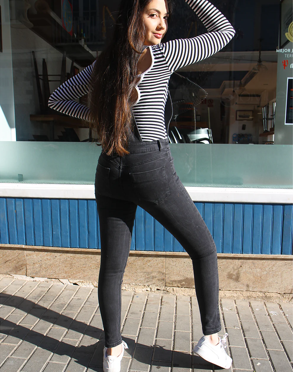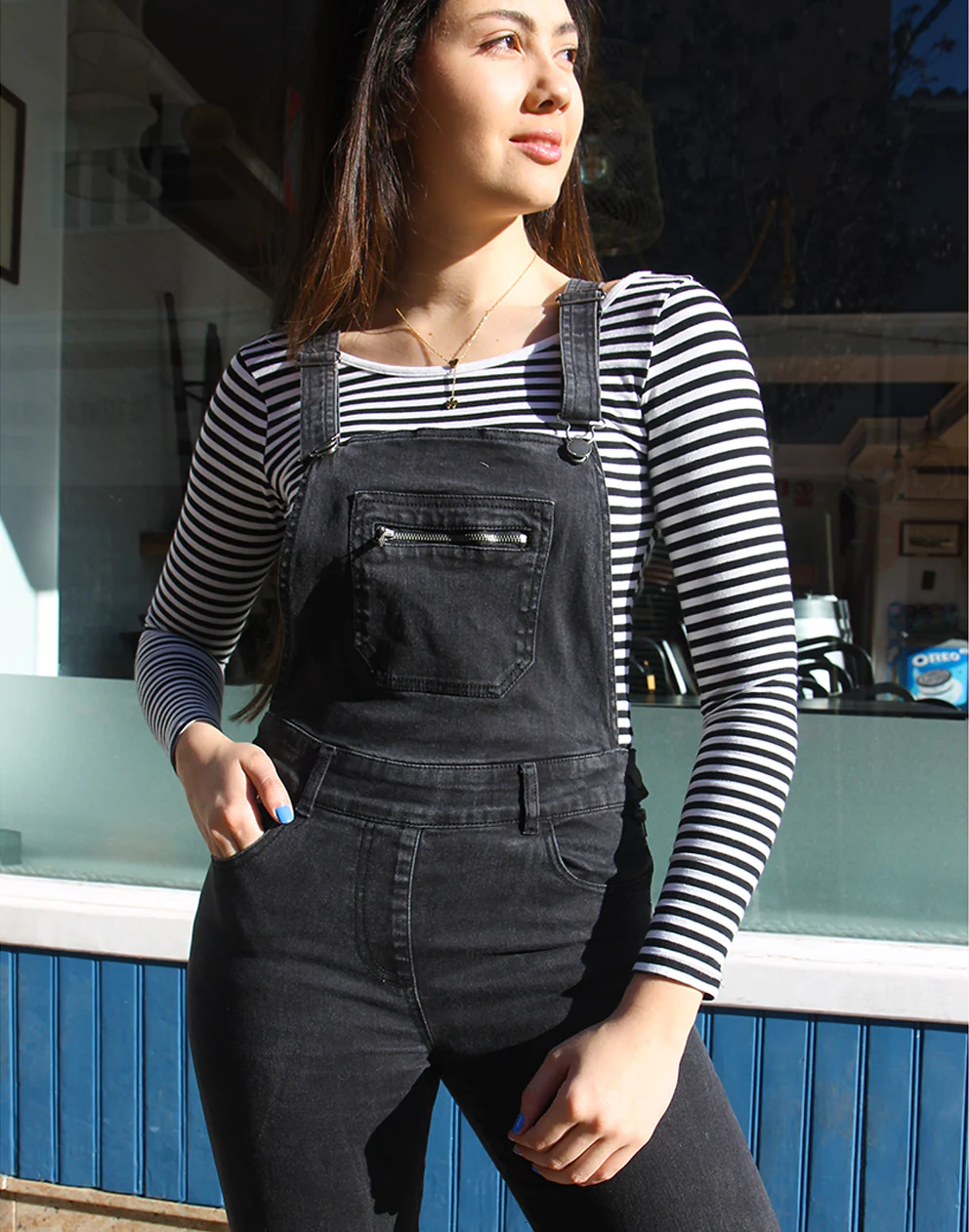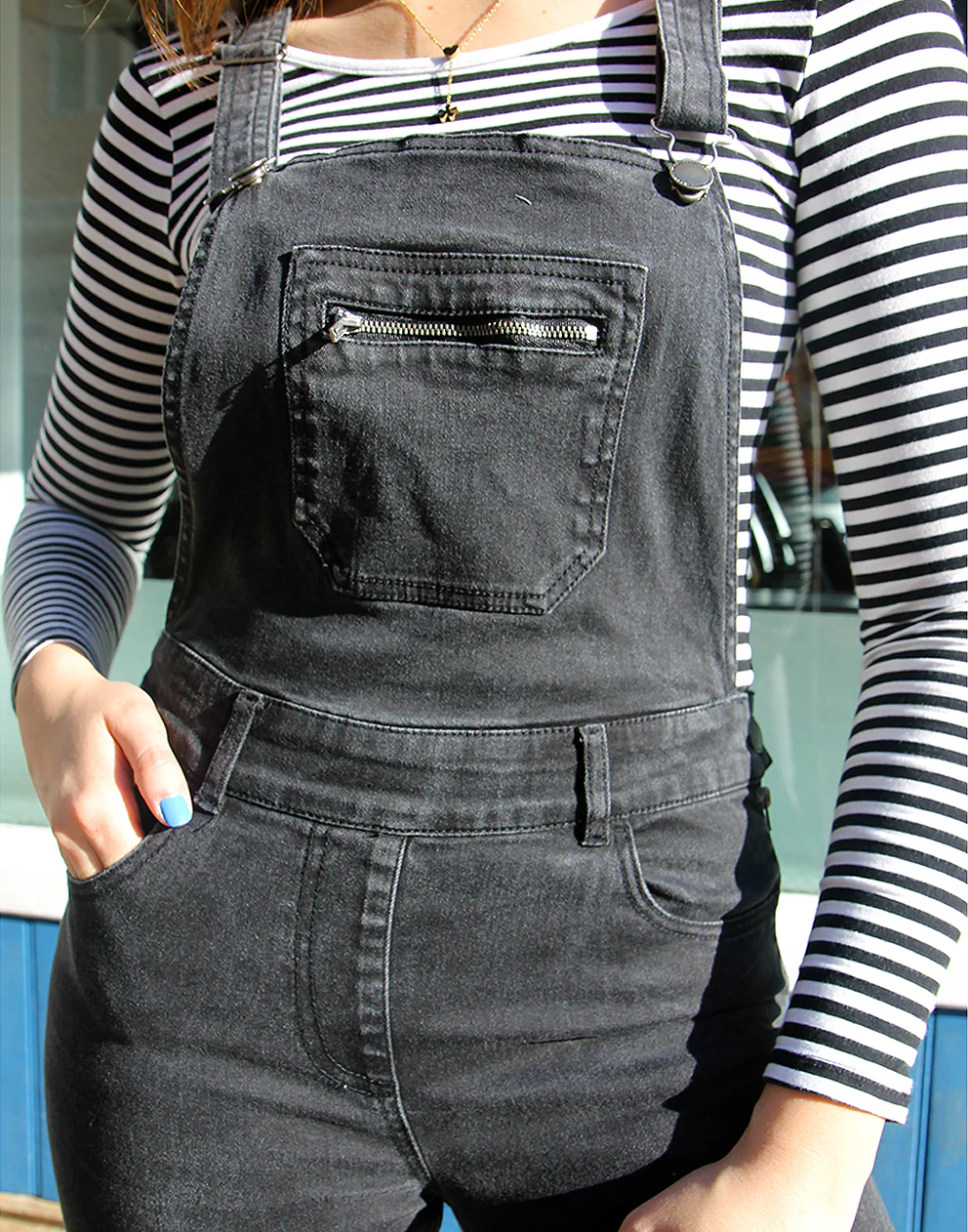 Vintage long dungarees in faded black.