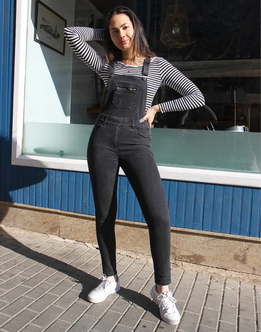 Vintage long dungarees in faded black.